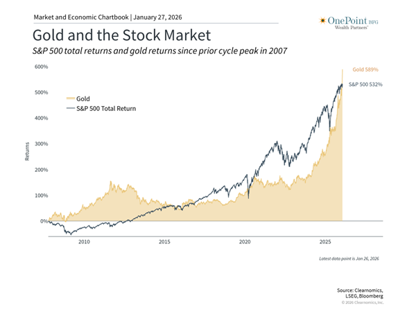 Gold and silver have experienced strong gains over the past two years, but long-term investors should view them as part of their overall portfolio. Their value comes not from recent performance, but from how they help balance your portfolio across different market conditions.